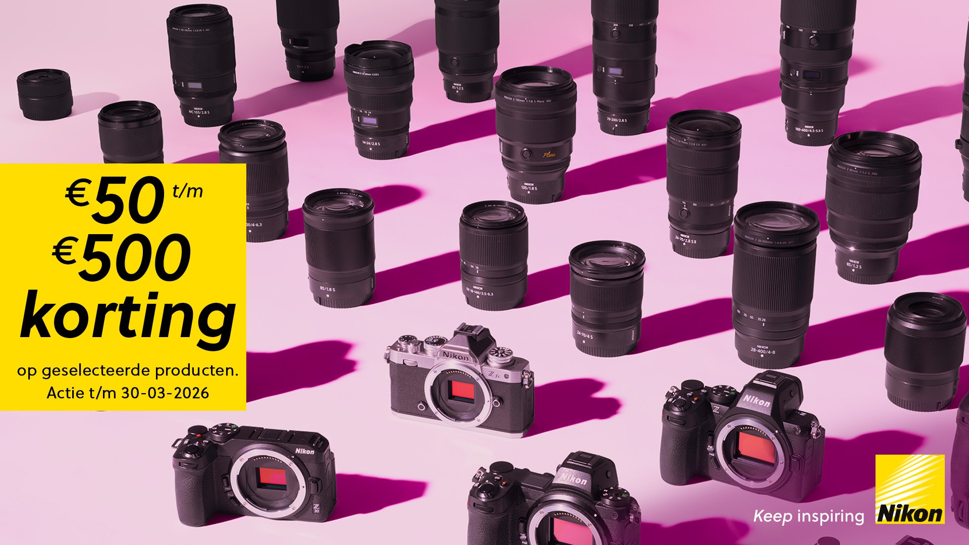 Koop een geselecteerde camera of objectief en ontvang direct de korting